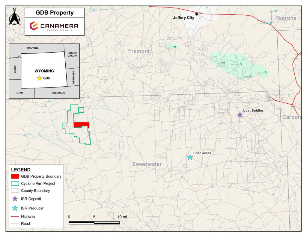Edmonton, Alberta – December 8, 2025 – Canamera Energy Metals Corp. (CSE: EMET | OTC:EMETF | FSE: 4LF0) (the “Company” or “Canamera”) announces that it has entered into an option agreement (the “Option Agreement”) to acquire up to a 90% total interest (in stages as described below) in the Great Divide Basin uranium project (the “Project” or “GDB”) located in Fremont and Sweetwater counties, Wyoming, USA.